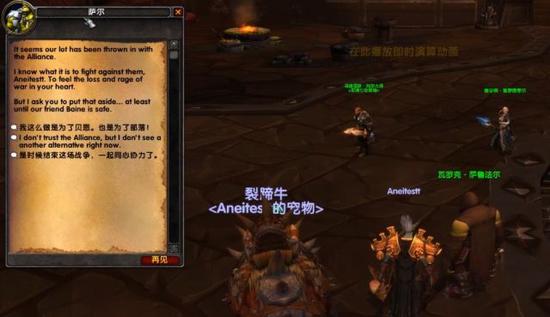 之后就是阿强和塔莉莎的对话,惊讶联盟部落的联手,然后决定休战,转头对付艾萨拉。