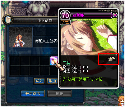 SAO的宝珠在个人商店中出售时,无法显示正确的售价,全部显示为0金币。