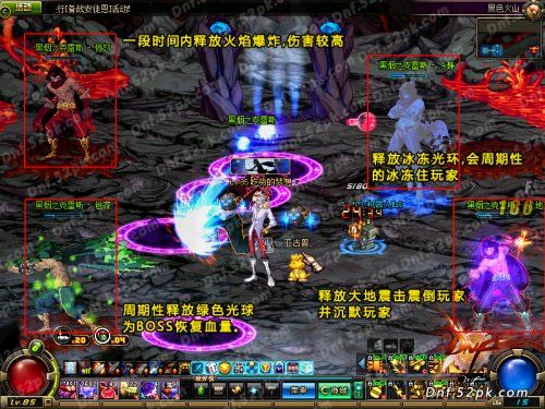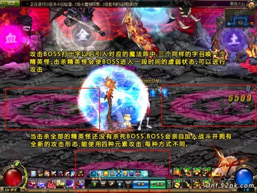 1、BOSS召唤的四个元素球,一定时间内没有破坏会形成四个分身,每个分身都有各自不同的技能。一旦分身出现需要快速消灭,否则会面临灭团的风险。