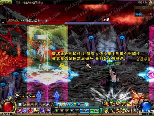 2、BOSS使用禁锢将玩家困在封印柱内时,需要尽快击破左上角的金色封印柱。在集体聚集到紫色封印柱中使其变色为金色,而后击破。