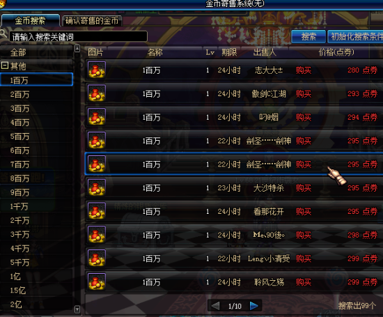 2、然后买下寄售的金币