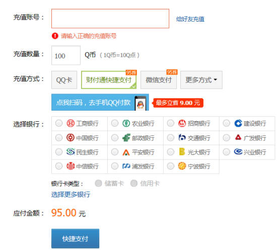 另外在说下 手机支付买下Q币充值点卷更便宜,最低9.1折。