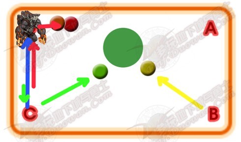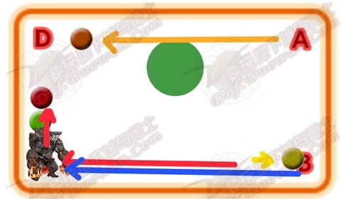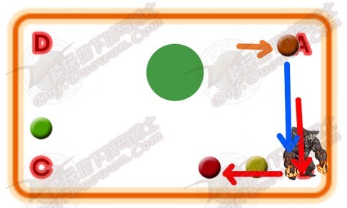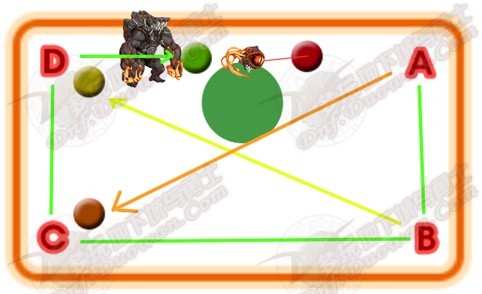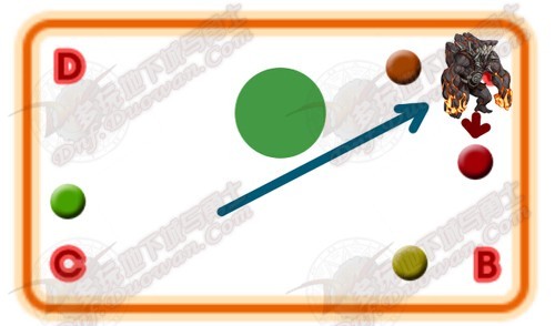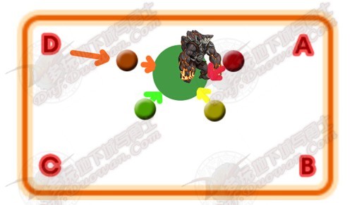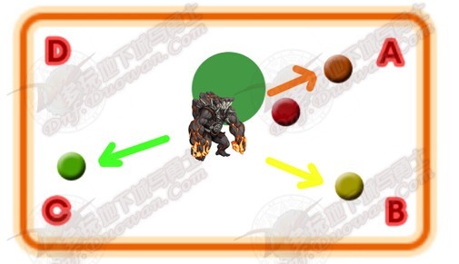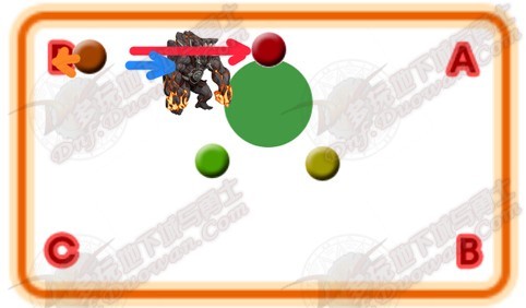 2P:在A石头准备等待1P引诱BOSS破坏保护罩。击破石头后迅速到D点准备