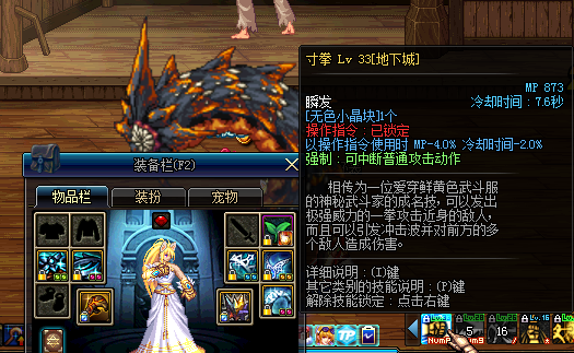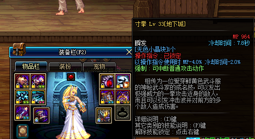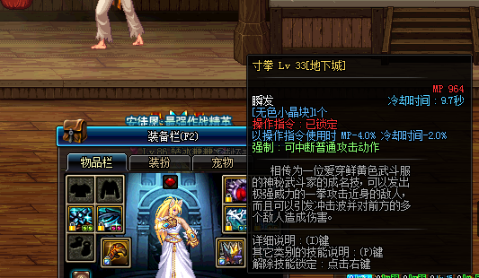 寸拳初始CD为15S,武器用东方棍显示为初始CD。