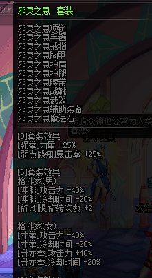 接下来是考察异界装,邪灵6,6件套寸拳CD-20%。