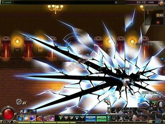 屏幕破碎的感觉,哗啦啦,不得不说,这技能还是很有打击感的,尤其是最后一下。华丽,高伤,不墨迹!