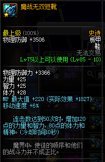 连击数达到50提升120点力量,持续10S冷却10S,120点力量还凑合,现在的白字装备很多,很容易就能达到50连击数,基本算是全程吧。