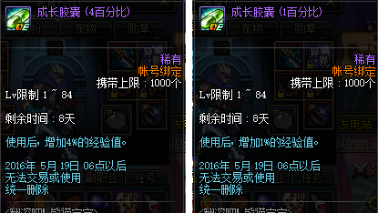 然后另外一种就是百分比的经验胶囊了,最近翻滚熊猫的活动送的就是百分比经验胶囊。牛头怪乐园的也是百分比胶囊。