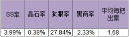 2 SS爆率在4%左右,基本上25把标准600票左右一个货,属于正常亚洲人嘴脸