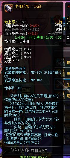 走暗强的情况下,比释魂好点点。但是黄字容易冲突。所以总体感觉这两把武器差不多把。毕竟释魂不冲突,方便搭配装备。