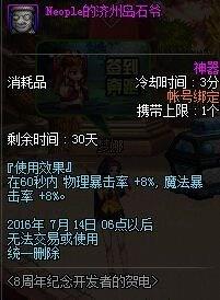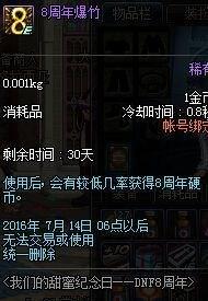 8周年项链主需要用8周年硬币获取,硬币可以通过副本当中掉落的非标道具打气球获得,也可以买8金币一个的8周年宝珠开到,这个项链PK效果和常规60粉项链一样,并不像去年周年庆项链有PK加成