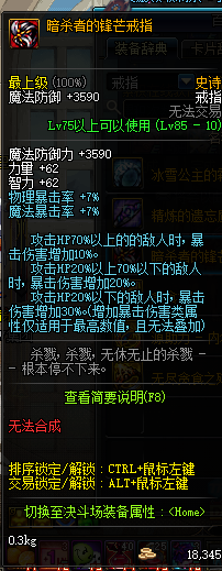 普通玩家做一个魂链或贪食手镯以及戒指也是没问题的,各种ss属强石也可以,还有空城泪暗杀戒指。单件天域也能用