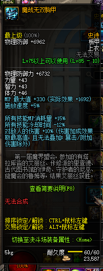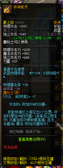 然后就是噬魂了,如果有了暴伤装备推荐噬魂吧上衣备好两个,一个无双枪术,一个二觉被动,无双换装用。二觉被动直接加的全技能攻击力对雷霆流最好,尤其是刺激和双刺。