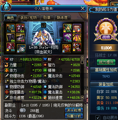 另外说一点经过测试重置的技能不只是(1-45)的技能,血爆也是可以重置的,二觉不太清楚,魔战套其他装备搞好了也是可以上火山,楼主穿魔战二觉1e1雪豹8000W足够上火山了