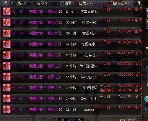 我是黑龙江一区的,刚才想把强打卖了买个称号。然后喊喇叭。卖强打和增幅10(我还有一个+10增幅券),2500W,就有一个人叫黑一信誉商 人什么的。。后面俩字我忘了。说2500W要了。问我押金多少,我说我有2000W骗子说那好吧。我信你,我要增幅觉醒之智-掠天之翼,拍卖卖 5000W,压你两千W。这东西就是互相信任。机智如我感觉不对......这东西再贵也不能5000多W吧?,我就去问群里基友......基友说这东 西是最近暴涨。