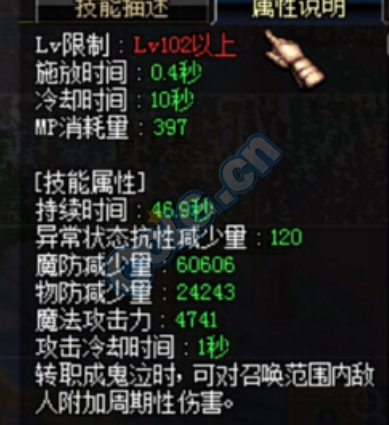 没看错,就是120的异常状态抗性减少量,我们还是以0异抗为例,再次计算配有鬼泣的情况下,触发三次的期望值。配有领域6 30绿的鬼泣,套装单次触发的几率为12.765%,触发三次的期望HIT为58.8HIT,除去白字为14.7HIT。触发两次的期望值为8HIT,刨 除白字只要2HIT。同时鬼泣如果开了紫阵,那么中毒出血是必然出现的,千蛛只要再触发剩下三件的其中之一即可,其期望值为3HIT。多么神奇