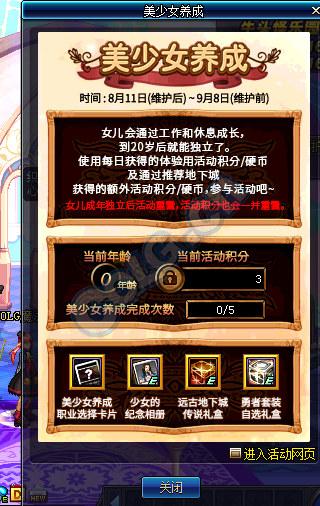 女儿养成可以说是之前韩服大家最期待到国服的一个活动,送任务传说一件,异界套装两件,当然最棒的还是可以养女儿啦~~