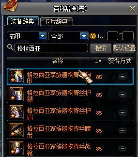 85级格拉西亚家族布甲套+格拉西亚左槽+耀眼的暗黑魂魔石+耀之荣光手镯or周年庆手镯+拉罗的迷失之戒+灵魂猎者+光属性SS武器or无属性SS武器。如果带别云剑需要把耀之荣光手镯替换为格拉西亚手镯,左槽佩戴三攻左槽。