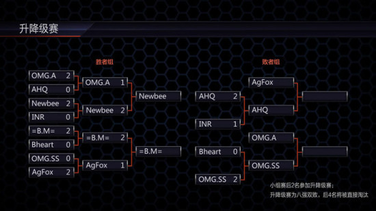 6月26-28日,由网易和暴雪举办的《风暴英雄》黄金风暴联赛在上海近铁城市广场完成了第一赛季第四周的常规赛程,在本周进行的升降级赛中,Newbee和=B.M=从胜者组中出线,率先获得保级名额。而在败者组的比赛中,来自中国台湾的两支队伍AHQ和INR迎来内战,双方在战成1比1平后,AHQ以奇招维京人打乱了INR的战术部署取得胜利,INR也成为了首支从本届黄金风暴联赛中被淘汰的队伍。