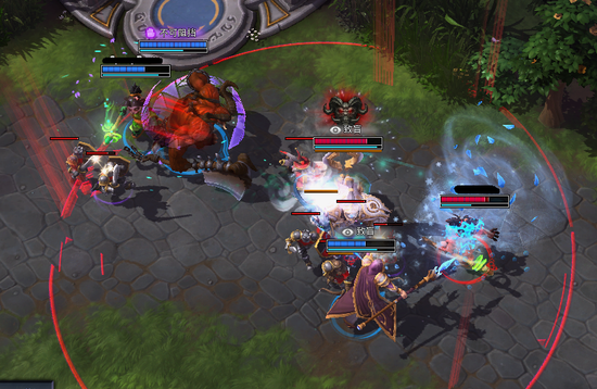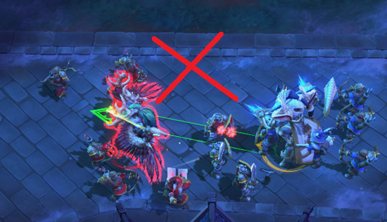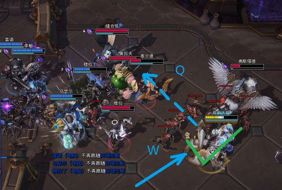 首先团战不要和队友一起从正面上,那样是不会有好结果的,对面的AOE可以毫不犹豫的砸过来,而从侧面切入会让对面的后排陷入进退两难的境地,只有一套技能放完后就没法打大主教了,被粘着浑身难受。