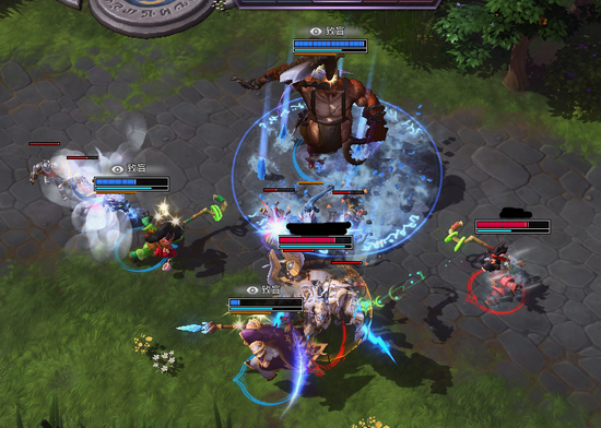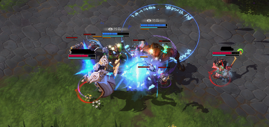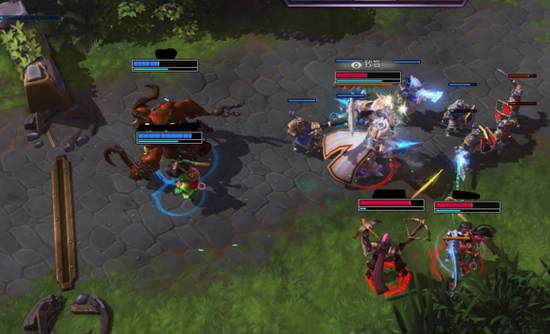 3个近战挤在一起结果被山丘卡主,吃了李敏一套,蓝方赶来一人,结果红方被反过来追杀