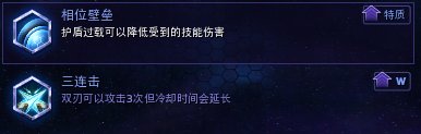 三连击被削了,效果是:提高W33%的伤害和刷盾,提高少量的爆发,降低20%的伤害和刷盾,降低20%的冲锋释放率。总的来说适合打持久战时使用。