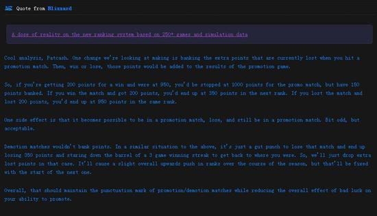 原帖有点长,简单概括来说就是各个级别想要快速晋级都有很高的胜率要求,而如果你是以一个很低的级别为起点爬天梯(例如白银、青铜),即便你的能力足够上到白金、钻石甚至大师,你也没有足够的时间去打完这么多场比赛。后来暴雪蓝贴肯定了他的数据分析并决定对天梯做出如下改动: