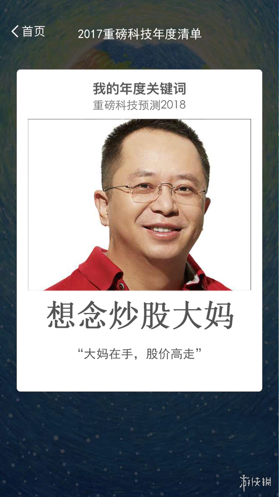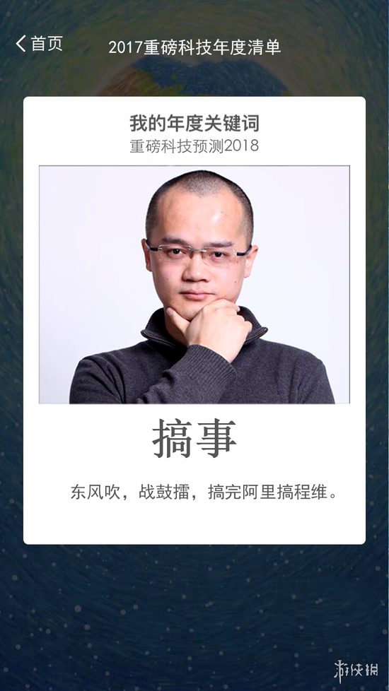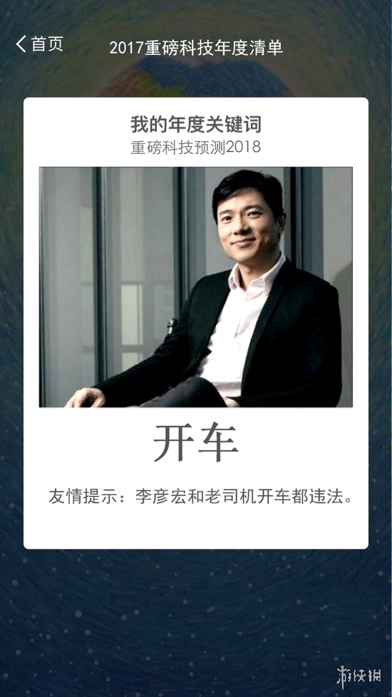 有网友迅速模仿,对各位IT大佬在2017年的表现进行了年度关键词账单总结,例如李彦宏的“开车”、马化腾的“吃鸡”,点评精确到位令人佩服,当然最经典还要属乐视前CEO贾跃亭,“回国”这一个词也表达了各界人士的共同心声。