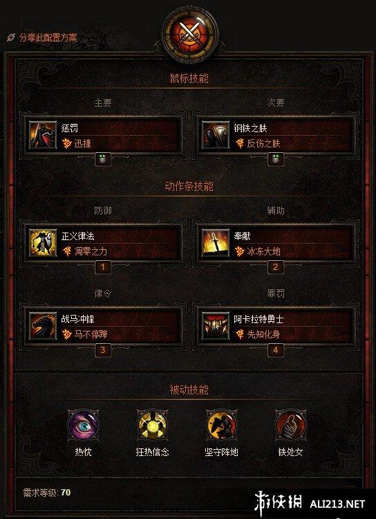 惩罚-迅捷,搭配被动热忱、狂热信念。也可以用裂空斩+狂热,不用狂热信念攻速被动,用宝石之力被动打小怪阶段快,但是打单体boss稍慢。
