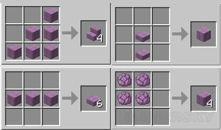 这些方块是用来装饰的,可以透过将紫影果(Chorus Fruit)烤熟后得到