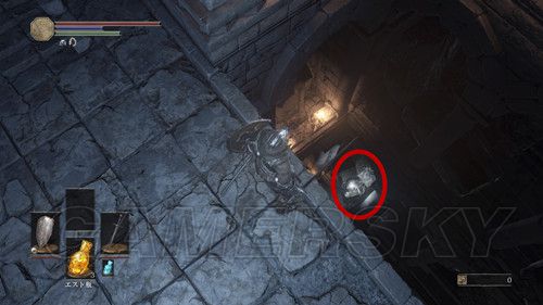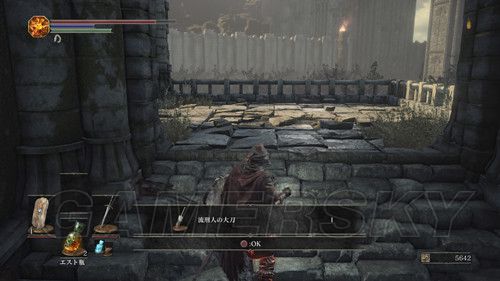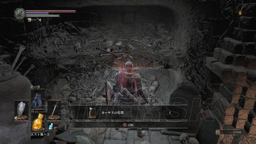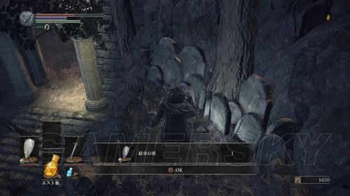 回到篝火之后,我们出门从左侧缺口跳下去,注意,从阶梯的上方,有一个裹着尸体的球,会来回滚,只要你出现在路上,就会触发,注意躲避,来回勾引3次尸体球滚下来,当这个尸体球自己坏掉后,可以拿到强化篝火的石头(白金必要条件),进入该通道后,在里面堆满罐子的场地,最里面可以捡到カーサスの乳環(戒指),注意这里打破罐子会有灵魂体飞出攻击你,一路向前走,还可以拿到楔石の大欠片,注意,这里有好多坑,在往前,就是该场景第一个篝火;