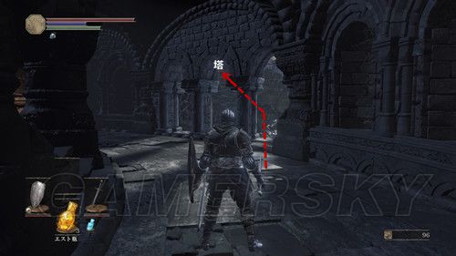 想要前往下一个场所必须获得“塔の鍵”,可以在祭祀場の侍女花20000魂买到;