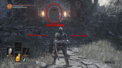 原路返回,进入新场景“火継@ぎの祭祀場”;