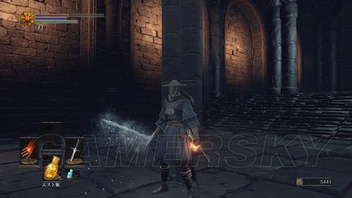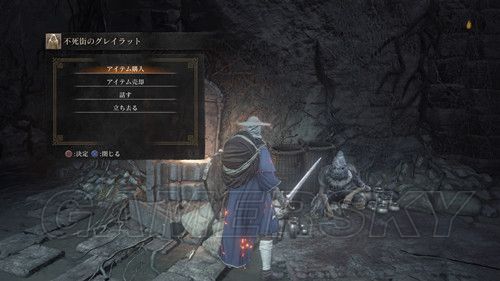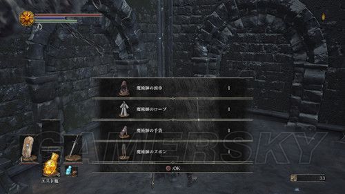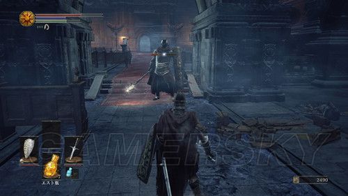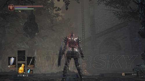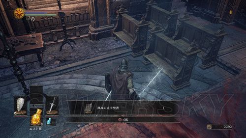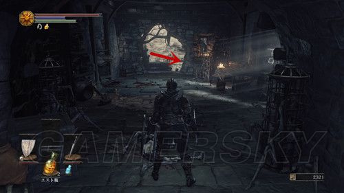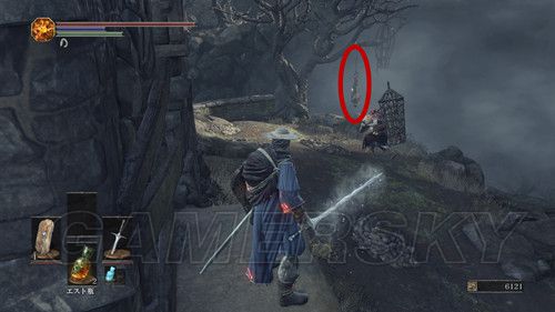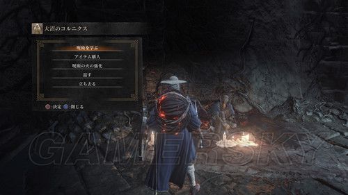 然后通过下水道,前往第四处营火,第四处营火的顶层,外部有个悬挂的笼子,与笼子里的人对话,选择呪術を学ぶ,然后NPC消失前往祭祀场,我们可以在祭祀场学习咒术;