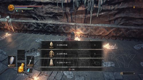 与坐在台阶上的其实对话,可以获得”へたり込み”,在祭祀場の侍女可以买到联机用的白いサインろう石;