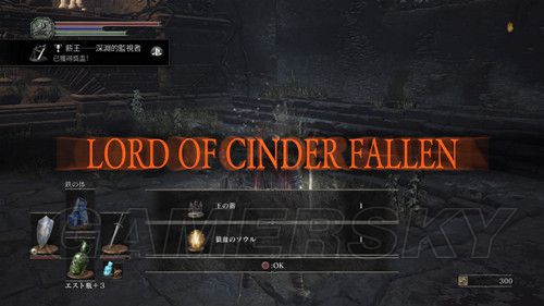 BOSS战结束后,会获得两个奖杯(灰烬审判者 古达和得到火的力量,两个铜杯),获得任务道具“螺旋之剑(可以在营火间来回传送,但是目前还无法使用)”,然后点亮第二个营火,点亮后,角色的身体会被火焰覆盖,此状态下,会提高玩家HP最大值;