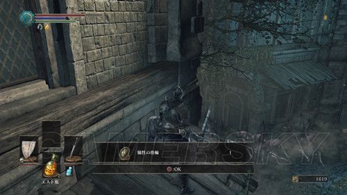 我们从冷冽谷的波尔多营火处,前往不死街,我们从大门出去,向前走一段,会提示我们使用ロスリックの小環旗,然后触发剧情,我们会被直接带到高墙之下的营火;