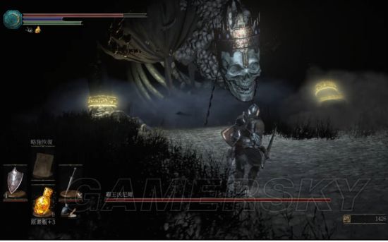 在你砍断他左手两个手环之后,BOSS可能会抬手去招骷髅(这招可能早期就会出,比较拼人品),这个时候你最好跑到他右手处对准手环疯狂输出,争取一次砍死他。如果让他招出骷髅会很麻烦,因为那些招出来的不仅仅只是小骷髅,还有那些让你看到就想跑的头套骷髅。虽然这些骷髅还是会被BOSS攻击的,但是他们都会复活大约一次,所以为了尽快解决,请迅速跑去砍手。如果你行动得太慢,那么你很可能会像我一样见到BOSS的最后一招:他会用右手从地上拔出他的圣剑,然后来砍你。基本上他出这一招你就可以GG了,因为这时候他的右手会悬在空中,你根本砍不到,不过他不会一直拿着圣剑,砍一会儿之后他会把圣剑捅进地里,然后下次会再拔出来。