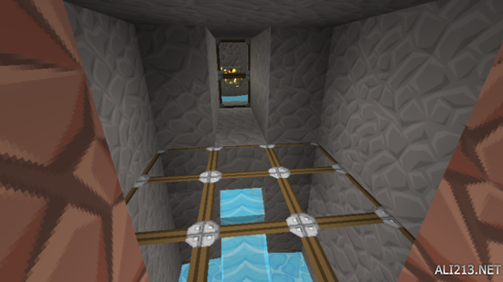 和一般的做法不一样的是开口外三内五,这样怪物不会堵在开口处,然后在最短的水上面旁边的墙上放三块牌子,还是最短的水前面旁边墙上放三块牌子,