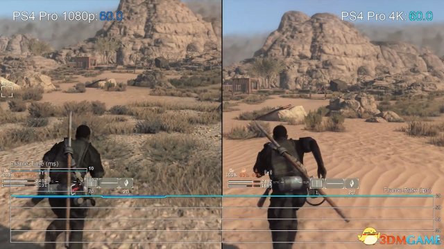 Digital Foundry通过对PS4 Pro运行《合金装备:幸存》技术分析发现,原生分辨率为1440P,画面包含不少特效。不过令人遗憾的是当场景比较复杂并且特效比较多时,帧率下降至50到40之间。如果把分辨率设置到1080P的话,尽管偶尔还会出现丢帧的情况,不过几率很低。
