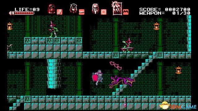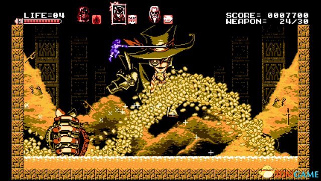 《血污:月之诅咒》踩出了一个介于致敬和直接偷窃之间的薄线。作为即将到来的现代画风《血污:夜之仪式》的Kickstarter奖励游戏,《月之诅咒》试图通过设定在系列年代久远的8位系列游戏来延续恶魔城传奇。这款游戏不但成功致敬了NES上的恶魔城游戏,而且做的有些过头了,几乎就是恶魔城的正传。