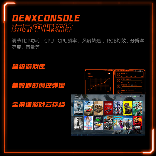 游戏体验方面,除了硬核配置的加持,壹号本OneXPlayer专属的游戏调控软件OneXConsole壹号玩家中心在经过多次优化升级之后,CPU功耗、GPU频率、风扇转速、屏幕分辨率等性能调节功能更为方便快捷,开启全局锁帧功能后可有效提升续航,且最新版中增加了游戏库功能,游戏库可以搜索本机上的游戏,记录玩家最近玩过或收藏的游戏,想玩什么游戏都可以在游戏库中快速开启,更方便玩家进行同步游戏存档,同时为了更方便掌机玩家之间的交流,玩家们可以在游戏下面进行评论,交流通关秘籍、掌机游戏使用技巧等等。