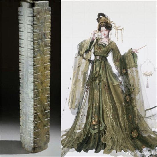 还有玩家以近期热门的大英博物馆展出的中国文物——目前已知最高的玉琮之一为原型,取色染色,让这一套“嫦娥套装”又承载了全新的使命。还有另外一款青花荔枝纹如意耳抱月瓶,也同样展览于大英博物馆,该玩家也以此为原型进行了染色和创作。中秋了,相信“他们”也想回家团圆。