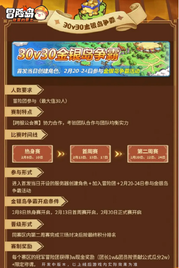 为了激发PVP爱好者们的竞技热情,官方还特意推出了“金菇杯百万赏金赛“活动,在1月24日开服当天0门槛就可以参与,1V1、3V3、30V30,三种模式都能参与,达到顶峰就有机会获得百万赏金奖励!