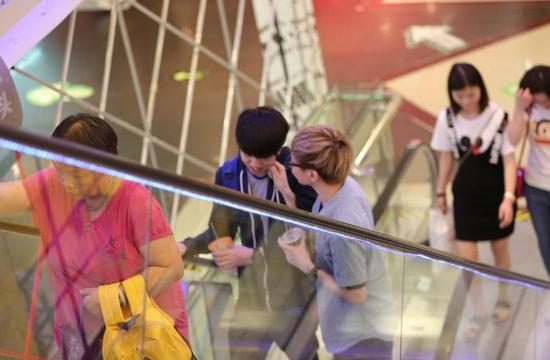 大庭广众秀恩爱,地点在广州的地王广场