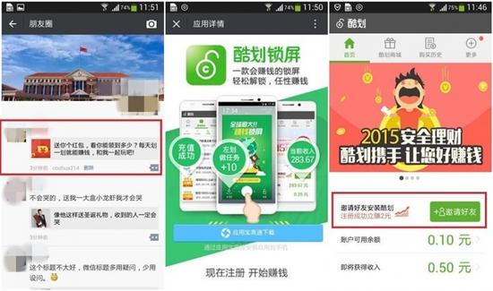 此次微信朋友圈开放下载系应用宝的“微下载”功能,只要点击微信中朋友圈、公众号的分享链接,两步操作即可下载,这开启了APP的社交化病毒分发。有媒体报道称,酷划锁屏在接入后整体下载转化率提升80%,日激活用户达1万。