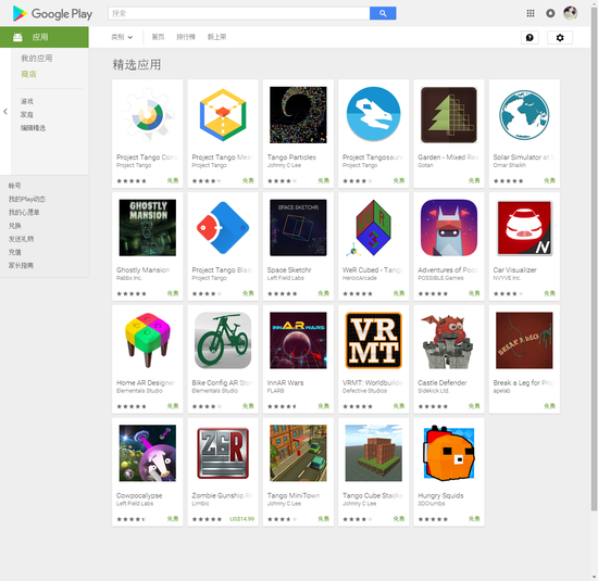 从Google Play目前所放出的支持Tango技术的应用来看,总共有23个。其中大部分皆为AR游戏及感知类工具。