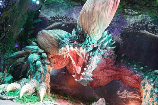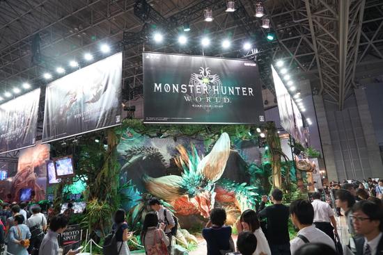 作为今年索尼展前发布会的压轴作品,《怪物猎人:世界》在会场也搭建起巨大的展台区域,魄力惊人!