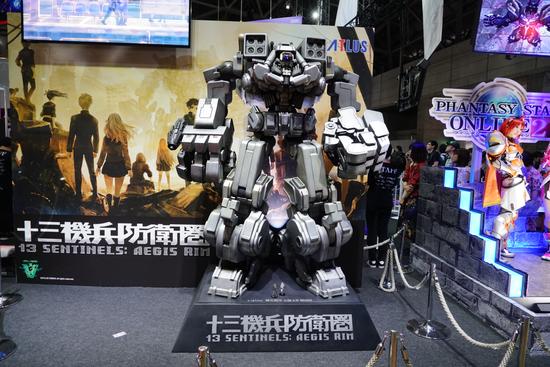 世嘉展台最重要的莫过于就是如龙以及人中北斗了。两部如龙新作——《人中北斗》和《如龙极2》,都请来了Show。。。lady来站台,同时在TGS2017索尼展前发布会引起惊呼的芳草社新作《13机兵防卫圈》也站起了机甲模型前来助阵宣传。