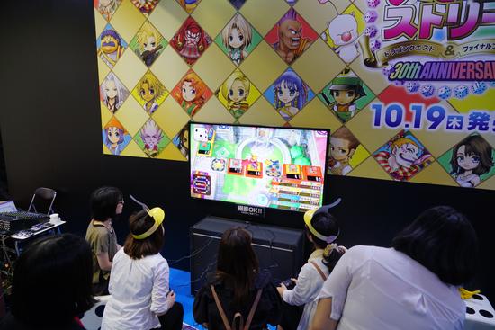 不过今年SE的展台最亮眼的莫过于比比皆是的最终幻想的图案和logo了,这主要得归功于《富豪街:勇者斗恶龙和最终幻想30周年纪念》这款即将推出的游戏了。